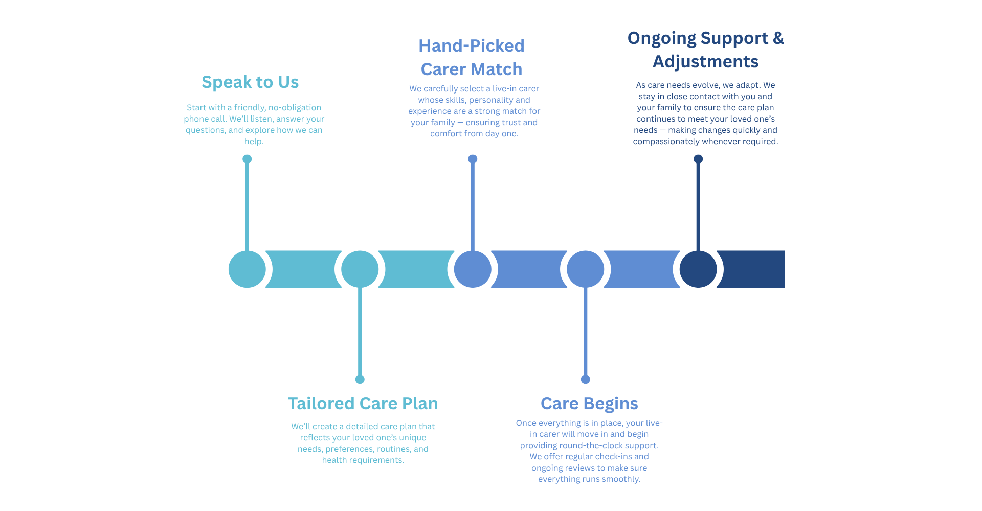 - Flexible care – from a few days to long-term support